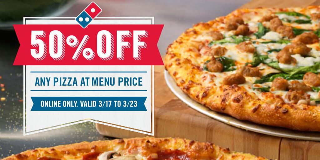 Domino's Pizza Coupons | (Extra 50% Off Promo) | October 2022 Use our valid 50% off Domino's Pizza coupon. See all 18 Domino's Pizza coupons, deals, promo codes, specials & free delivery offers for Oct 2022. 100 used today. Get National & Local Dominos Pizza Coupons for Carryout or ... Order pizza, pasta, sandwiches & more online for carryout or delivery from Domino's. View menu, find locations, track orders. Sign up for Domino's email & text offers to get great deals on your next order. Find Domino's Pizza Near Me | Order Food Delivery Now When you’ve got pizza on the brain, order online from Domino’s. With over 5,000 Domino’s local restaurants, it is easy to find pizza delivery near me. All you have to do is select delivery (or carryout) and type in your address or zip code to find the closest Domino’s location to you.
