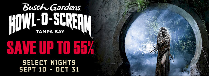 Busch Gardens Tampa HOWL-O-SCREAM Discounted Tickets | FunEx Get your Busch Gardens Halloween Discount Tickets through FunEx starting at only $38 vs Gate Price $104.99! Lowest price always guaranteed! Visit Busch Gardens Florida Howl o Scream! Ready for the most frightening night of your life? Get into that spooky spirit with Busch Gardens Halloween!